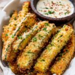 Crispy and flavorful baked zucchini fries coated with a parmesan panko crust, served with a tangy honey dijon dipping sauce. A healthier alternative to traditional fries, perfect as a snack or appetizer.