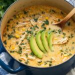 - Finish and Serve: Stir in the shredded cooked chicken, fresh lime juice, and chopped cilantro. Serve hot, garnished with Monterrey Jack cheese, extra cilantro, sliced avocado, and tortilla chips if desired.